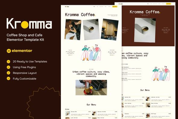 Kromma is a stylish Elementor Template Kit designed for coffee shops, cafés, restaurants, and beverage businesses. With warm layouts and a modern design, Kromma helps you showcase your menu, highlight your story, display pricing, and share customer reviews—creating the perfect online presence for your coffee brand.
