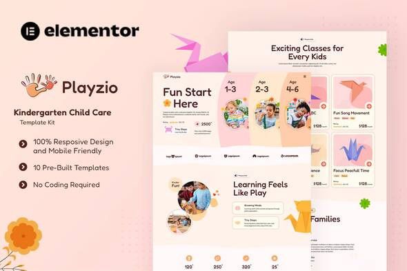 Playzio is a bright, playful, and responsive Elementor Template Kit designed for kindergartens, preschools, daycare centers, child care services, and early education websites. With its colorful and engaging layouts, it’s perfect for showcasing programs, facilities, teachers, and activities in a fun and professional way.