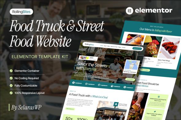 RollingBites is a vibrant and appetizing Elementor Pro Template Kit designed specifically for food trucks, street food vendors, and mobile restaurants. With bold visuals, delicious layouts, and engaging animations, RollingBites helps you showcase your menu, share your story, and attract hungry customers with style.